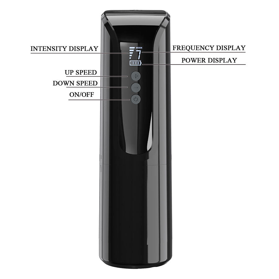 Este dispositivo realiza todo el trabajo por ti permitiéndote sentir aún más profundamente sus texturas internas de gran realismo, masajeando tu interior con una combinación de 7 funciones de vibración y succión, mientras monitoreas cada detalle en su moderna pantalla LED para un control total del placer.