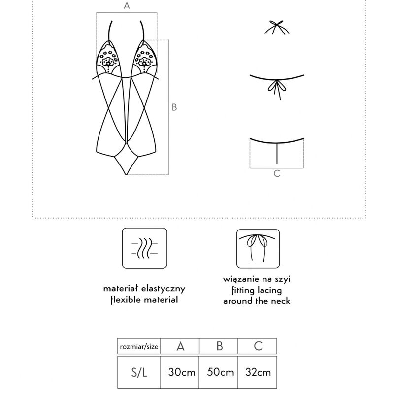 Un body diminuto y sensual despertará tu imaginación y convertirá la noche en una experiencia inolvidable. El body Luisina consta de un delicado sujetador de encaje y un tanga con un encantador motivo de rosas. El tanga y el sujetador se unen mediante una maraña de tirantes que realza la cintura y las curvas femeninas. Un sujetador que deja al descubierto parcialmente los pechos, realzándolos ligeramente, añade un toque increíble al conjunto. Los tirantes, ingeniosamente dispuestos, que fluyen entre los pechos hasta el tanga estilizan la figura. Las caderas y los hombros, prácticamente al descubierto, así como el tanga, se adornan con un bralette de encaje. Al igual que la espalda y los glúteos, decorados únicamente con un tanga y dos tirantes, lo convierten en una propuesta atrevida para ella.